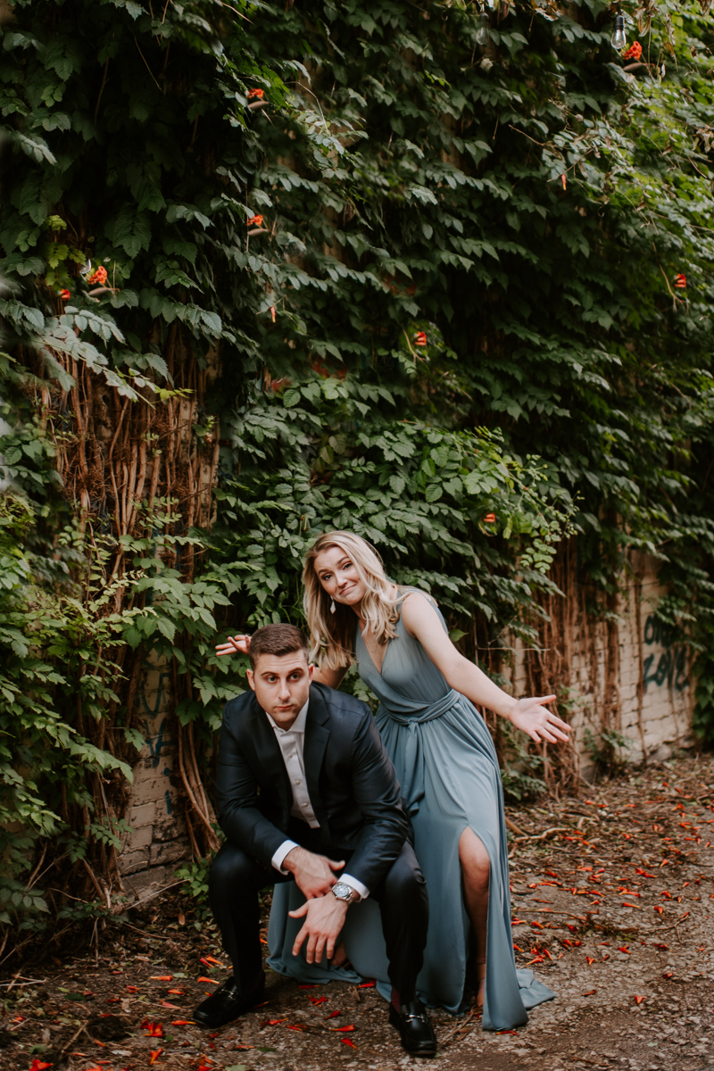 Alison and Barton are two of the most fun humans you will ever meet. They're the kind of couple that's down to get creative, but can also put down a Winsteads skyscraper, burger and onion rings and a hefty cocktail. All during their engagement shoot.